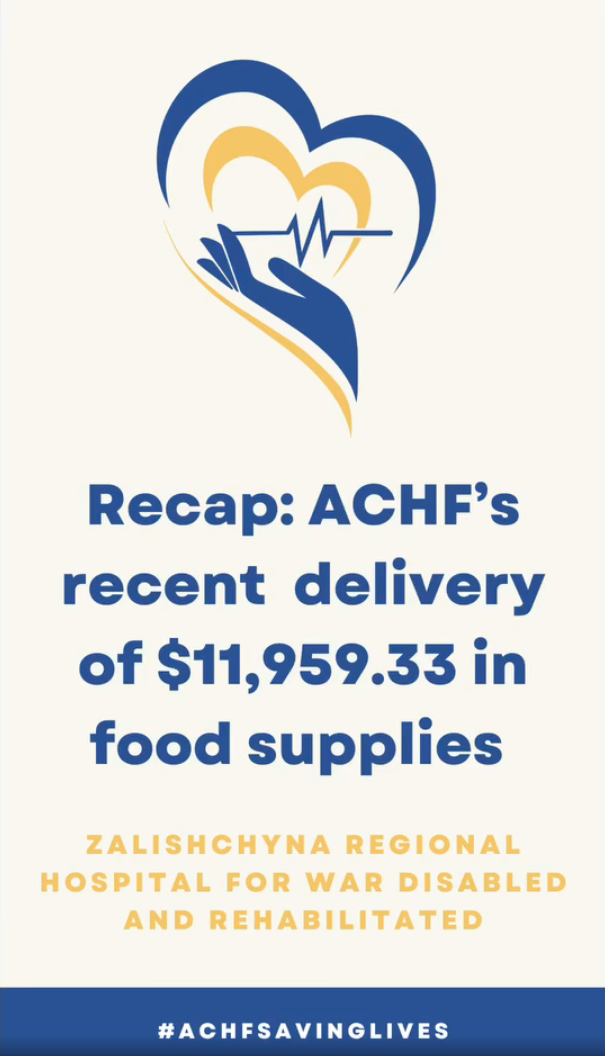 We are so thankful for the funding that UMCOR - United Methodist Committee On Relief and our donors contributed to this recent food donation. Almost $12,000 was used to purchase and ship food to the Zalishchyna Regional Hospital for War Disabled and Rehabilitated. ACHF representatives Lena Denman and Masha Ivanova saw firsthand how the donation will benefit those at the hospital and in recovery.